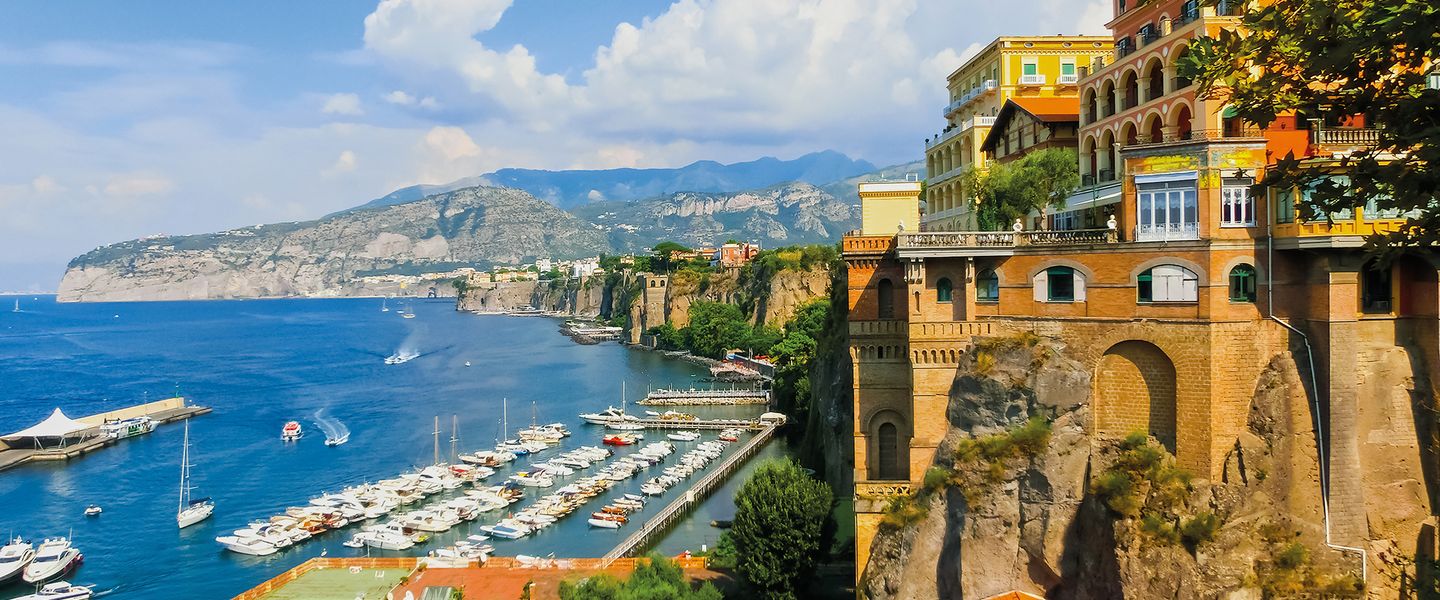 Die Stadt Sorrent liegt auf der Halbinsel von Sorrent am Golf von Neapel in der Provinz Neapel. Sie liegt über schwarzen Steilklippen aus dunklem vulkanischem Gestein auf einerTuffsteinterrasse. Sorrent wird von imposanten Felsen des Kalksteingebirges umgeben. Schon seit 2000 Jahren ziehen Sonnenuntergänge und Orangen- und Zitronengärten Besucher aus aller Welt an.