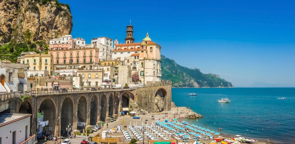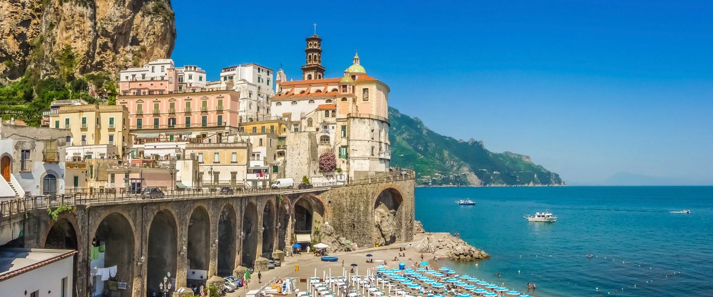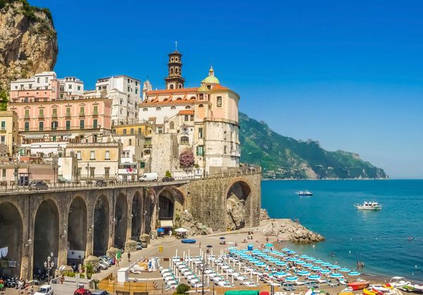 Die Orte Amalfi, Atrani, Maiori, Minori, Vietri sul Mare und Positano liegen direkt am Meer.Entlang der Küste führt die Küstenstraße Amalfitana.