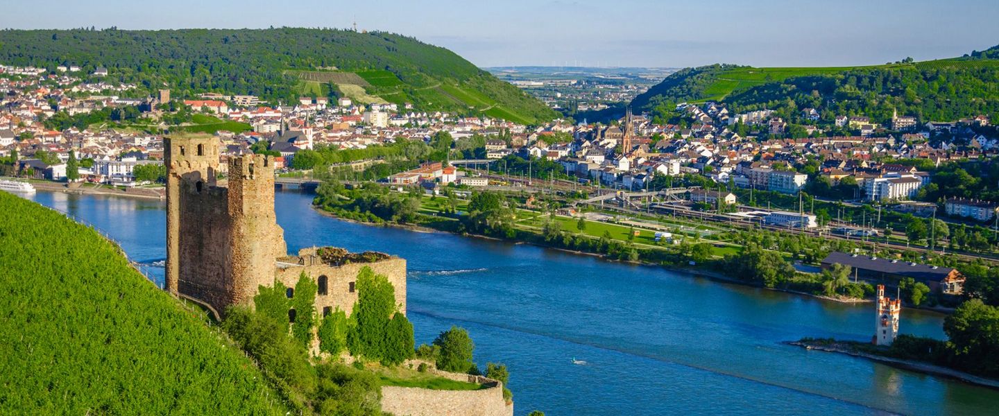 Rüdesheim liegt im Bundesland Hessen, etwa 60 Kilometer westlich von Frankfurt am Main, direkt am Rhein. Geografisch befindet sich die Stadt in einer der schönsten Weinregionen Deutschlands, umgeben von sanften Hügeln und steilen Weinbergen, die sich entlang des Rheins erstrecken. Die Anreise nach Rüdesheim ist sowohl mit dem Auto als auch mit öffentlichen Verkehrsmitteln möglich, wobei die Stadt gut an das Verkehrsnetz angebunden ist. Es gibt regelmäßige Zugverbindungen von Frankfurt nach Rüdesheim, die die Reise in etwa einer Stunde ermöglichen. Die zentrale Lage von Rüdesheim macht es zu einem idealen Ausgangspunkt für Erkundungen des Rheintals, einschließlich Bootsfahrten auf dem Rhein und Besuchen der nahegelegenen Städte wie Bingen und Assmannshausen. Die Kombination aus historischer Bedeutung, kulturellem Erbe und der Möglichkeit, die deutsche Lebensart zu genießen, macht Rüdesheim zu einem unverzichtbaren Ziel für Reisende, die die Vielfalt und den Charme dieser einzigartigen Region entdecken möchten.