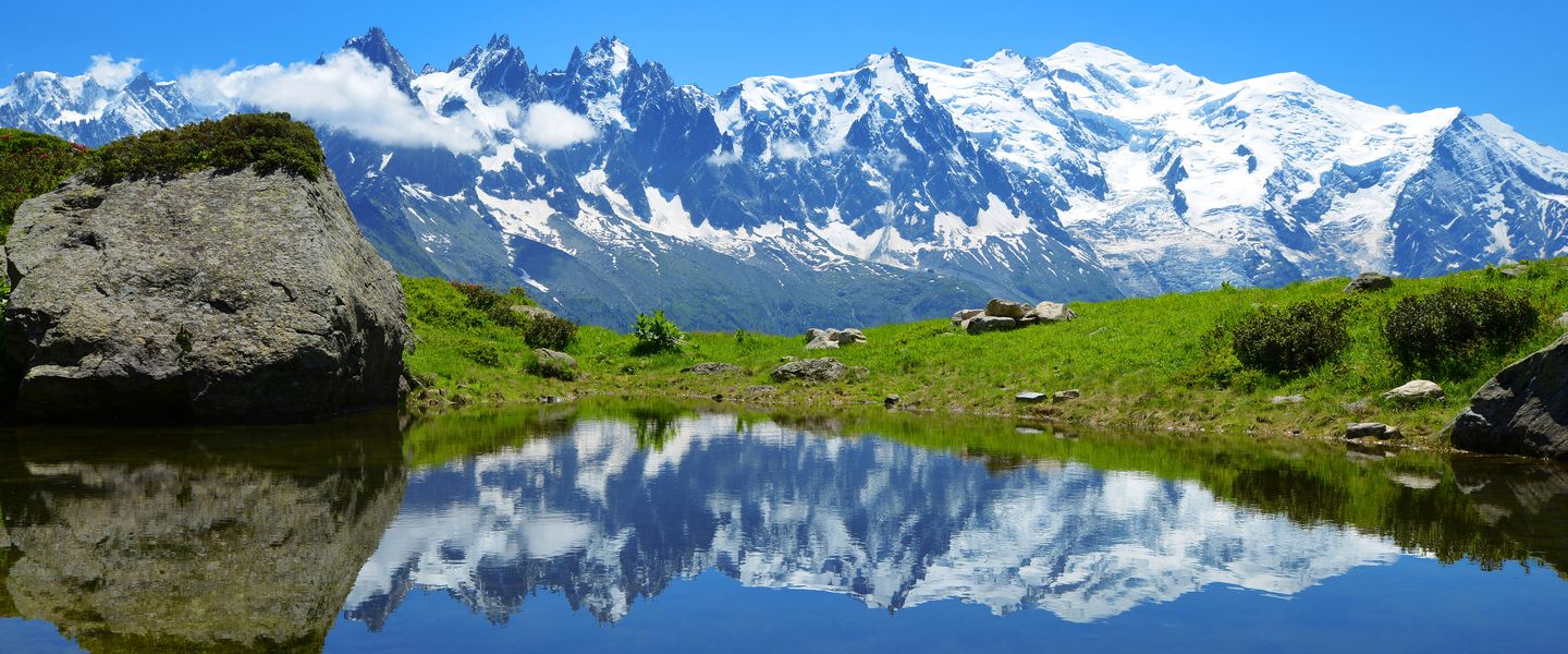 Der Mont Blanc bietet spektakuläre Aussichten auf die umliegenden Täler und Berge. Bei klarem Wetter kann man bis zum Matterhorn und sogar bis zum Schwarzwald sehen. Die Region um den Mont Blanc ist auch für ihre vielfältige Flora und Fauna bekannt, darunter seltene Pflanzenarten wie Edelweiß und Steinbock.