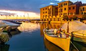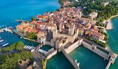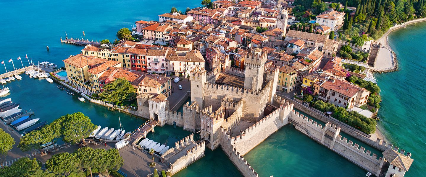Sirmione ist vor allem für ihre historischen Schätze und die malerische Altstadt auf einer Halbinsel im Gardasee berühmt. Das Wahrzeichen der Stadt ist die Scaligerburg, eine mittelalterliche Festung am Eingang zur Altstadt. Sie können die Burg besichtigen und von ihren Türmen aus einen spektakulären Blick auf den See genießen.
