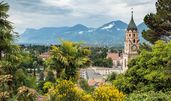 Meran ist eine malerische Stadt in Italien, die sich in der Region Trentino-Südtirol befindet. Sie liegt im oberen Etschtal, umgeben von beeindruckenden Bergen und ist bekannt für ihr mildes Klima, das es zu einem beliebten Kurort macht. Meran ist berühmt für seine Thermalquellen und die wunderschönen Gärten von Schloss Trauttmansdorff, die eine Vielzahl von Pflanzen aus verschiedenen Klimazonen beherbergen. Die Stadt hat eine reiche Geschichte, die bis in die römische Zeit zurückreicht, und war im 19. Jahrhundert ein beliebter Rückzugsort für die europäische Aristokratie. Heute zieht Meran Touristen an, die die Kombination aus Natur, Kultur und Wellness genießen möchten.