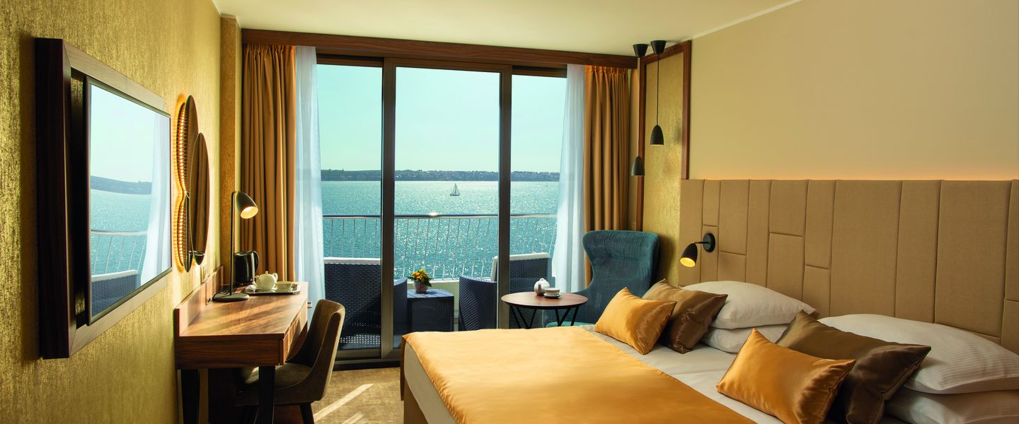 Das prestige Grand Hotel Bernardin liegt direkt am Meer, am beliebten Spazierweg zwischen Altstadt Piran und Portorož. Die Zimmer sind mit einem Balkon und Meerblick, SAT-TV mit Flatscreen, Minibar, Safe, Klimaanlage ausgestattet. Auch die Bademantelbenützung und gratis WiFi ist im Zimmerpreis inkludiert.