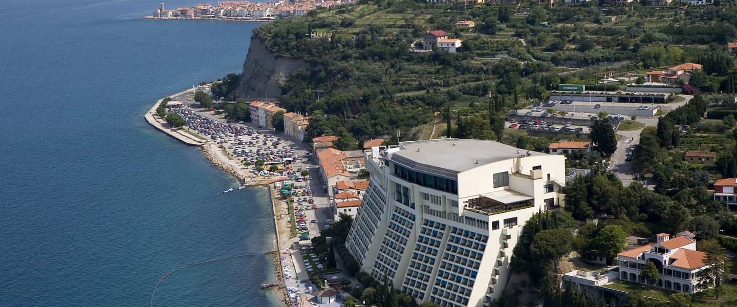 Das Hotel hat zwei á la carte Restaurants Pecina und Sunset, eine Cocktail Lounge mit Piano, ein Grand Café mit bedeckter Terrasse Grand Garden mit dem schönsten Blick auf Piranbucht. Den Gästen stehen das Zentrum des Wohlbefindens Paradise Spa mit vielfältigem Angebot an Saunen und verschiedenen Massagen und das Hallenbad mit geheiztem Meerwasser zur Verfügung. Das Hotel verfügt über einen eigenen Strand und zusätzlich über eine exklusive private Strandanlage. WiFi ist in allen Bereichen nutzbar und ist kostenlos.